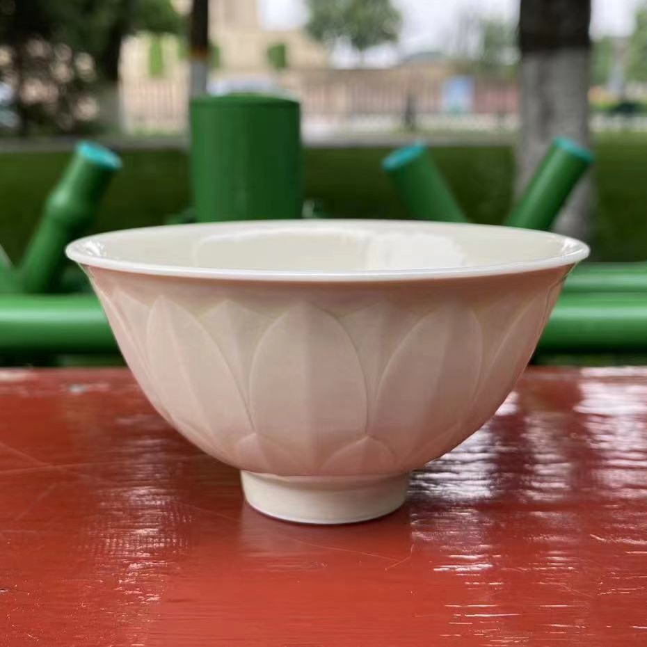 定窯瓷器,若從窯址發現遺物來看,始燒年代可以追溯到南北朝時期,最晚到明宣德年間,定窯仍有生產,定窯的發展過程,大致分為五個階段。 第一階段是南北朝到唐代早期,這階段定窯的主要產品是北方青瓷,到了這一階段末期,黃釉粗灰胎瓷其成為主流。 第二階段是唐代中期,這一階段,定窯出現粗白瓷,燒造方法出現支燒,器形以餅足尖唇碗居多,胎色灰白,多施化妝土。 第三階段是唐代晚期到北宋早期,這一階段是定窯白瓷的成熟期